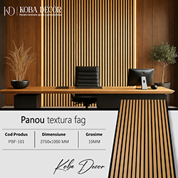 Pe langa rolul decorativ, panoul riflaj acustic KOBA DECOR contribuie la imbunatatirea acusticii incaperii prin reducerea reflexiei sunetului si a ecoului ambiental, oferind un confort fonic superior in spatiile interioare.